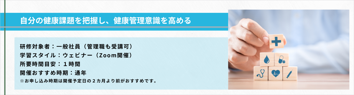 一般社員向け自分の健康と向き合う オンライン・健康づくりセミナー:ウェビナー(オンライン研修)